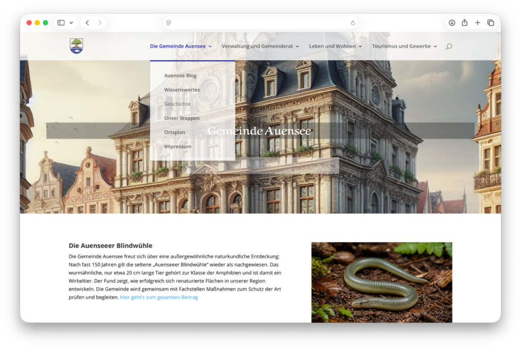 Die Gemeinde Auensee ist eine vollständig entwickelte Übungsgemeinde, die speziell für die Ausbildung im öffentlichen Dienst konzipiert wurde. Sie bildet Strukturen, Prozesse und Abläufe einer echten Kommunalverwaltung praxisnah ab.